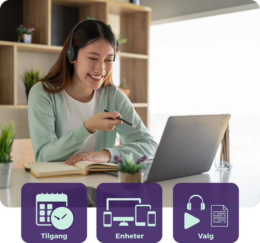 Logg deg inn når du ønsker, og velg ditt eget tempo. Kurset har du tilgjengelig på din telefon, nettbrett og laptop. Ønsker du å bruke ulike enheter, oppdateres din fremdrift automatisk på alle.